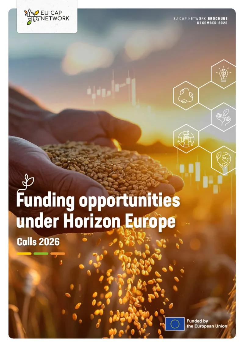 The EU CAP Network has published a brochure detailing funding opportunities for 2026. It covers topics such as sustainable agricultural practices, healthy soils and the circular bioeconomy. Please access the brochure here.