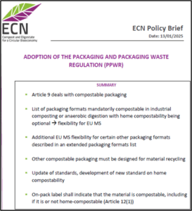 The ECN prepared a Policy Brief on the adopted version for its members. The adopted packaging and packaging waste regulation can be accessed here.